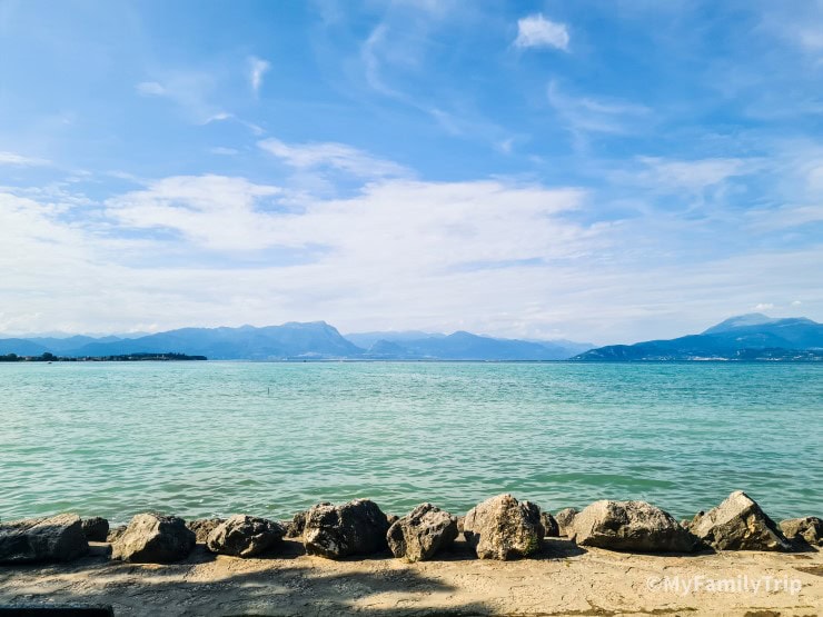 Une fois arrivés à notre logement, nous n’avons pas résisté longtemps à l’appel du lac de Garde. Nous avons filé admirer sa couleur incroyable tout en profitant d’un moment de détente (pour nous) et jeux (pour les enfants) bien mérité sur la pelouse.