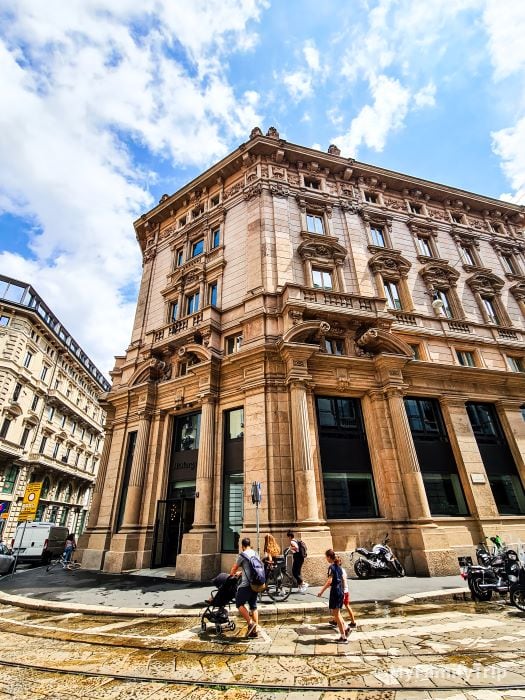 Pour notre deuxième journée à Milan, nous avons débuté par la Chiesa Santa Maria delle Grazie dont le réfectoire du couvent abrite l’œuvre de léonard de Vinci : la Cène. Malheureusement, sans réservation, nous n’avons pas pu l’admirer mais nous avons tout de même profité de la beauté éclatante de l’église et de son cloitre. Nous avons poursuivi notre exploration de la ville à pied et nous avons ainsi enchainé les découvertes comme les Chiesa San Maurizio et ses impressionnantes fresques, le quartier des affaires avec ses immeubles élégants et la sculpture L.O.V.E. devant le palais de la Bourse ou encore la Piazza Mercanti, une des places les plus anciennes de Milan! Nous avons traversé la piazza Cordusio et remonté la Via Dante jusqu’au Castello Sforzesco. Malheureusement, nous avons pu seulement l’admirer de l’extérieur faute de temps. Ce fût une matinée bien remplie où nous en avons pris plein les yeux! Un vrai régal😀